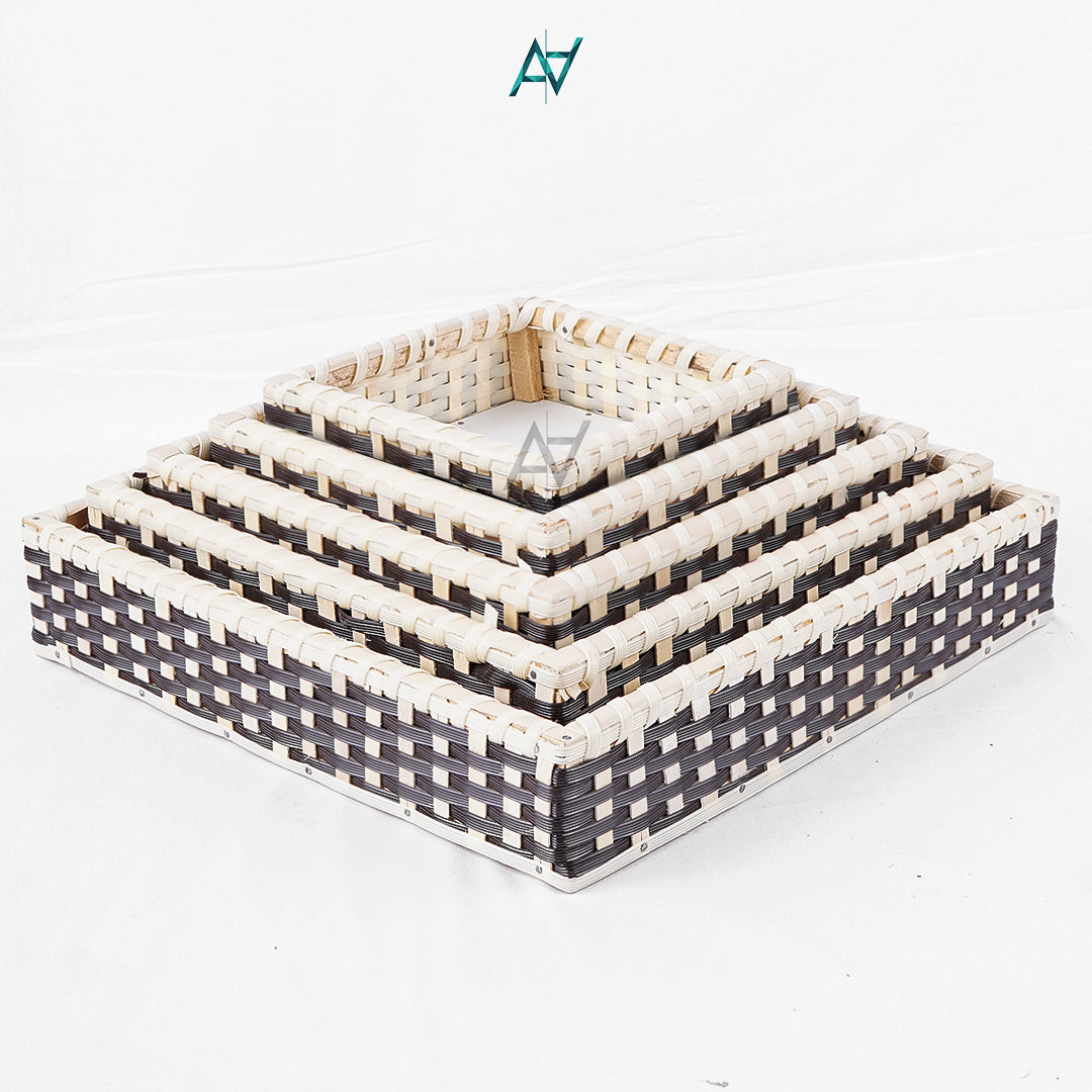 Brown & White Square Cane Basket, perfect for storing small household items like keys, remote controls, makeup, or small accessories. Lightweight and sturdy, ideal for tabletops, shelves, or countertops to keep things tidy and organized.