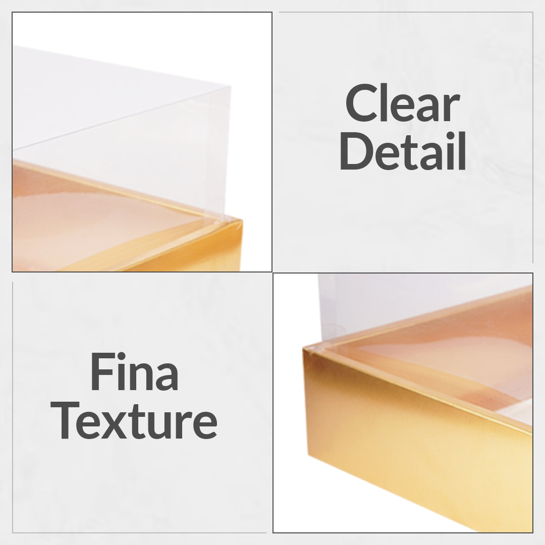 Elegant Design: Sleek and sophisticated, perfect for showcasing gifts beautifully. Made from durable materials for sturdiness and reusability. Versatile Usage: Ideal for various occasions and easily customizable. Available in sizes 8x8, 10x10, and 12x12.