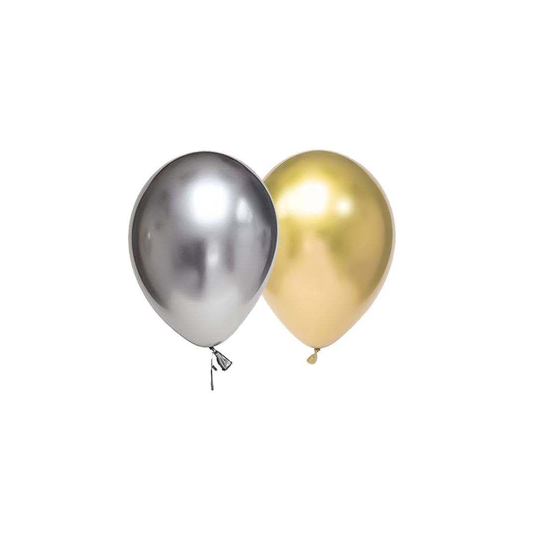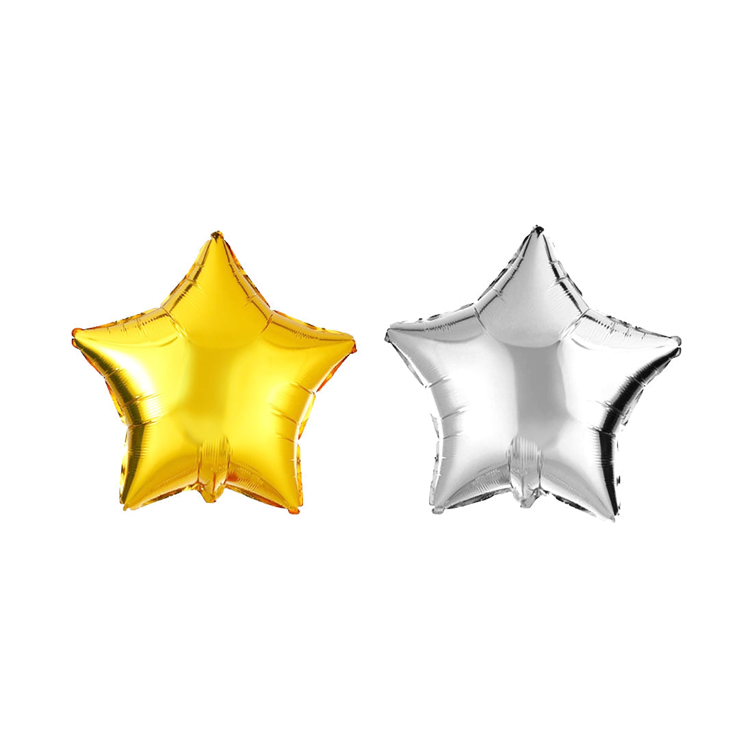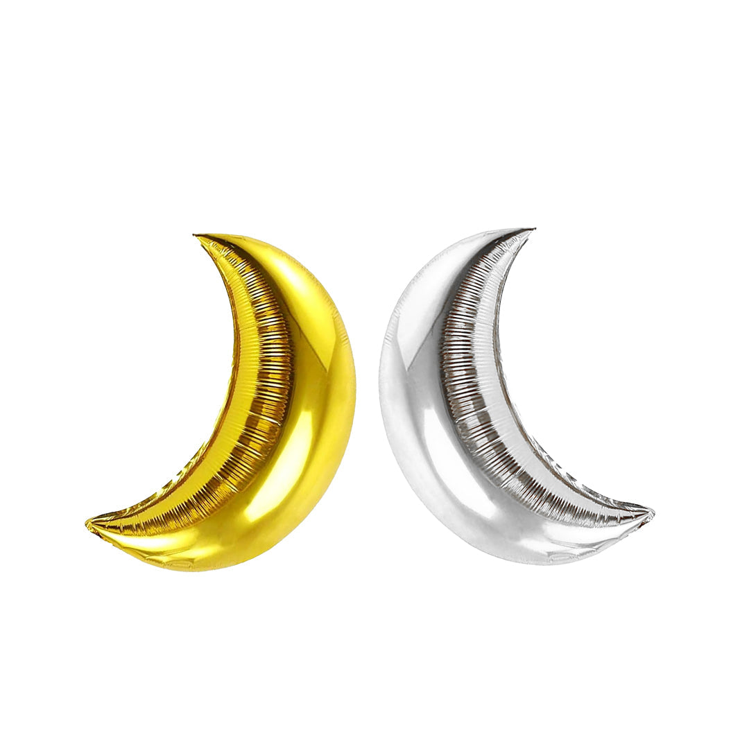 Create a festive atmosphere with our Eid Ultimate Bundle featuring a hanging banner, 1 foil curtain, 10 gold and 10 silver chrome balloons, 2 pcs 18" moon and star foil balloons. Perfect for Eid celebrations.
