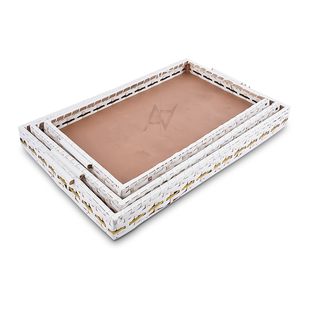 Set of 3 White Rectangle Wedding Cane Trays – Perfect for Gifting & Wedding Decor