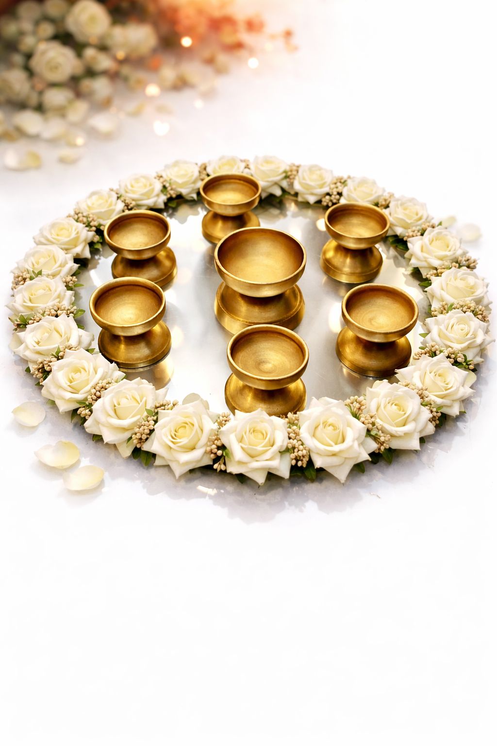 Elevate your celebration with our versatile Thaal, a traditional decorative platter designed for South Asian festivities. Perfect for Mehndi, Mayon, Shaadi, and Diwali events, this piece combines cultural authenticity with elegant presentation. Crafted to showcase sweets, flowers, and ceremonial items, it serves as both a functional serving vessel and a stunning centerpiece. Whether you're hosting an intimate gathering or a grand celebration, this Thaal adds sophistication and tradition to your special moments. An essential addition to any event décor collection.